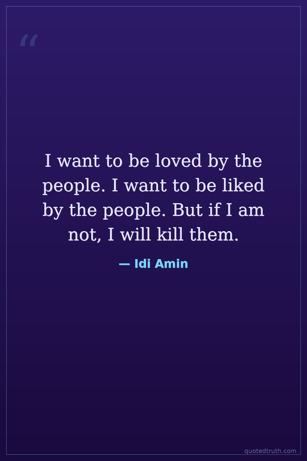 I want to be loved by the people. I want to be liked by the people. But if I am not, I will kill them.