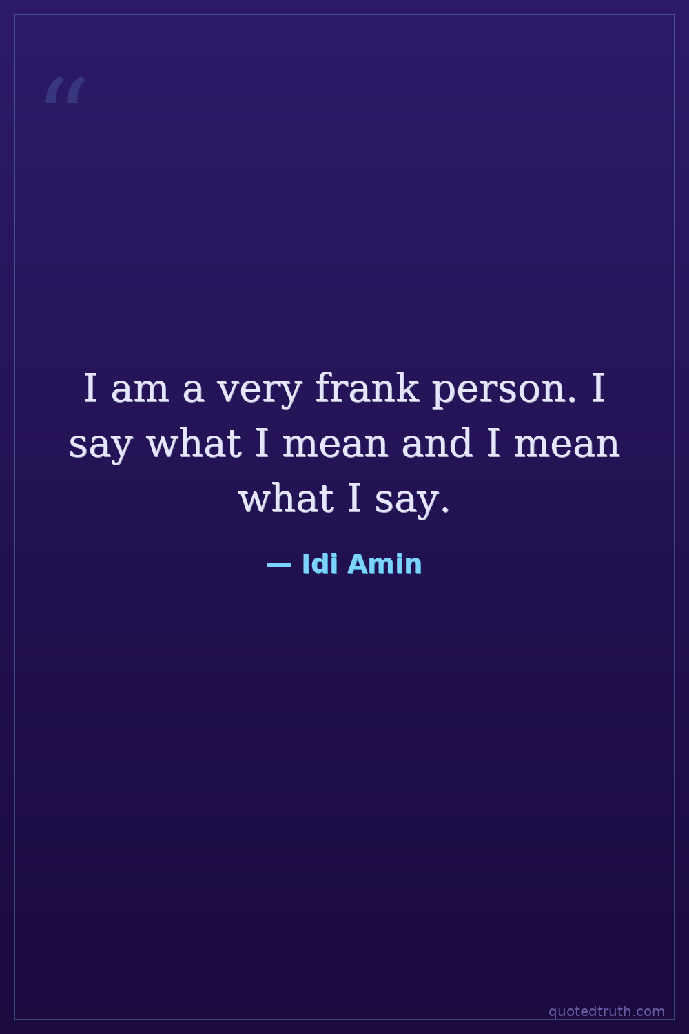I am a very frank person. I say what I mean and I mean what I say.