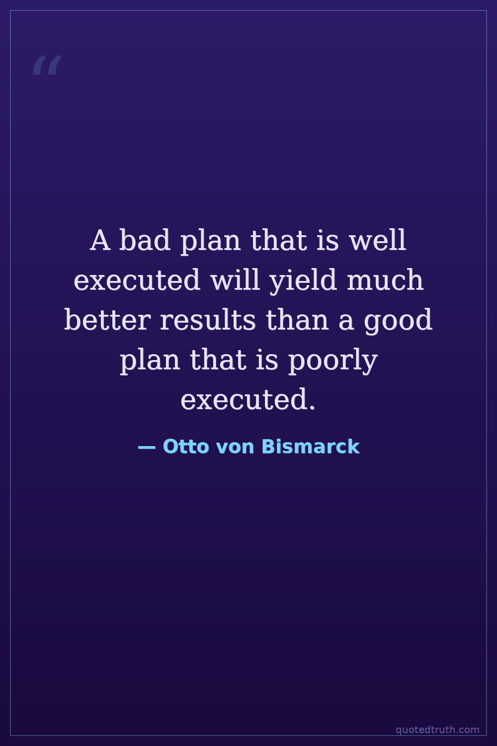 A bad plan that is well executed will yield much better results than a good plan that is poorly executed.