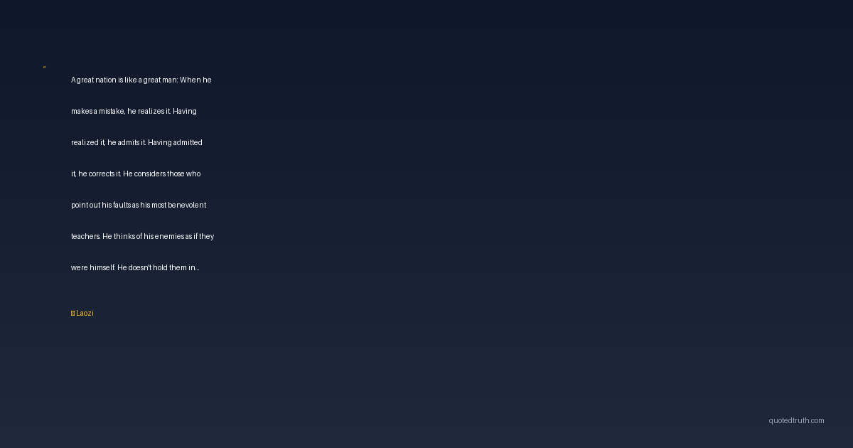 A great nation is like a great man: When he makes a mistake, he realizes it. Having realized it, he admits it. Having admitted it, he corrects it. He considers those who point out his faults as his most benevolent teachers. He thinks of his enemies as if they were himself. He doesn't hold them in contempt.