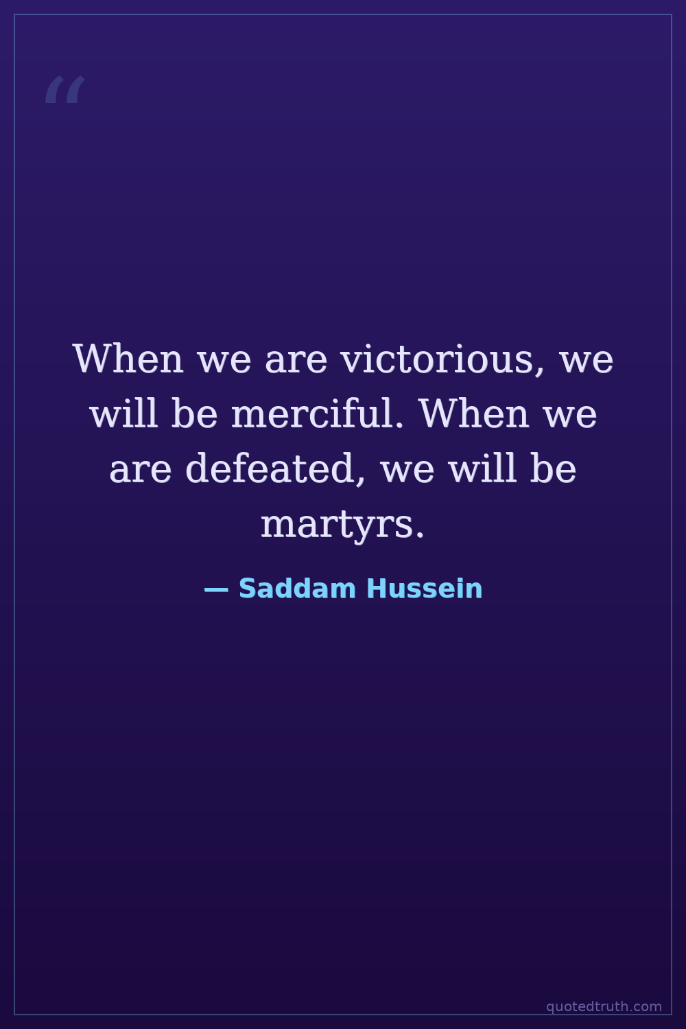 When we are victorious, we will be merciful. When we are defeated, we will be martyrs.