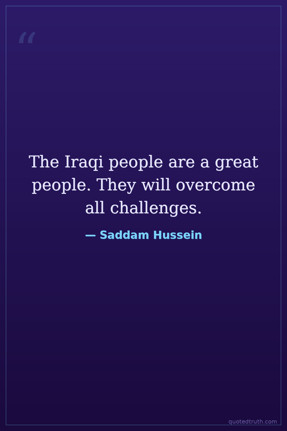 The Iraqi people are a great people. They will overcome all challenges.