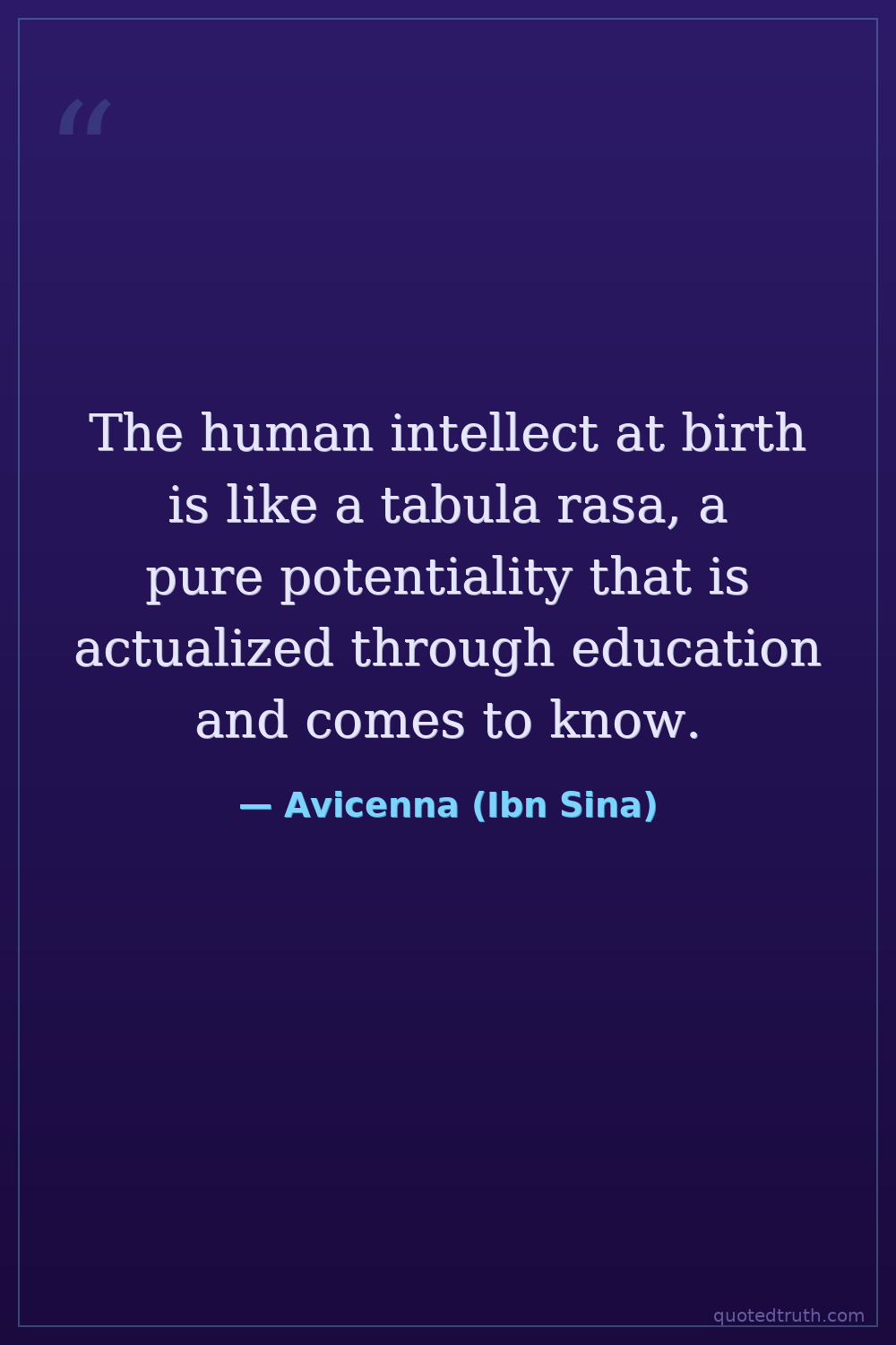 The human intellect at birth is like a tabula rasa, a pure potentiality that is actualized through education and comes to know.