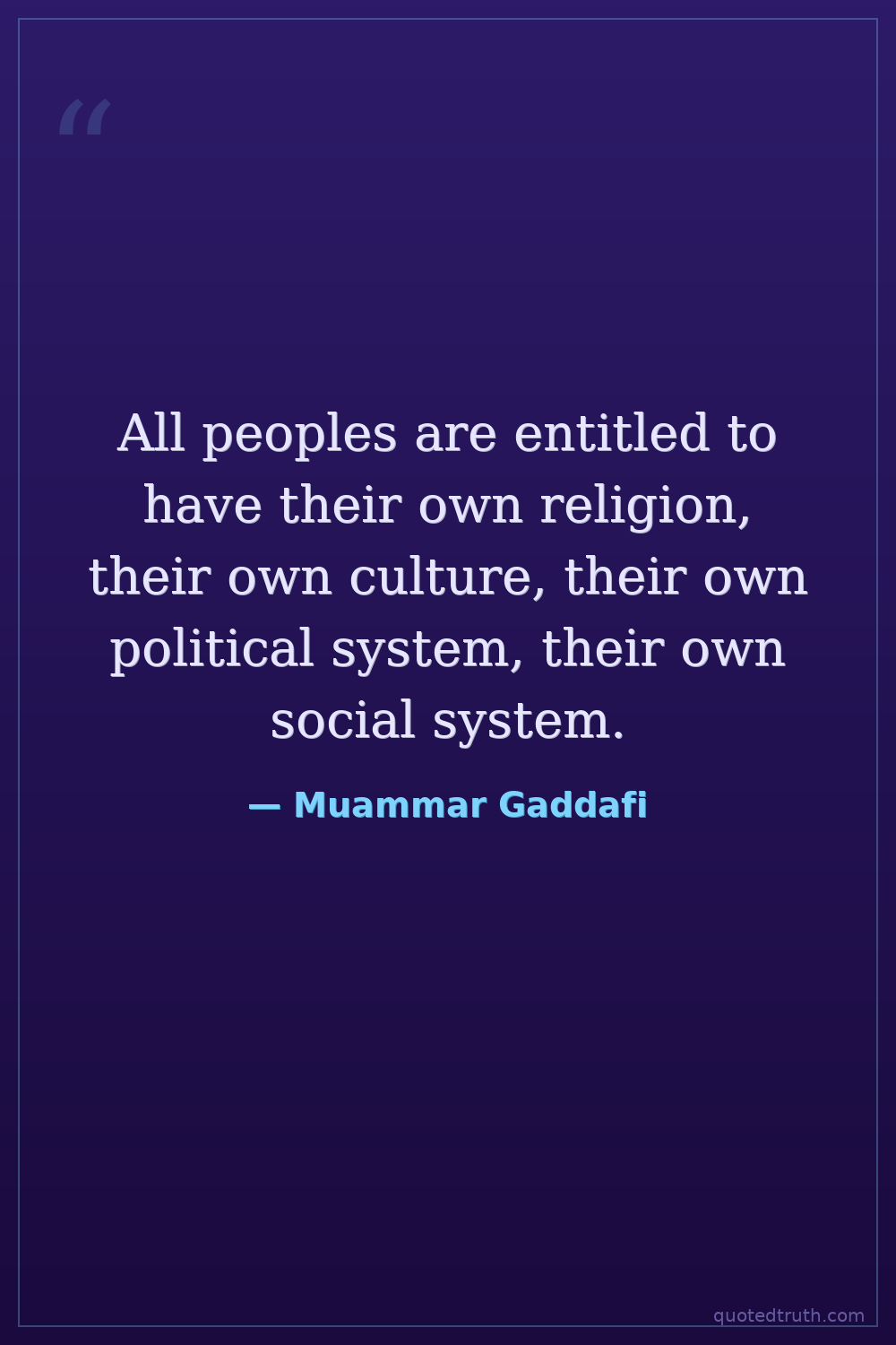 All peoples are entitled to have their own religion, their own culture, their own political system, their own social system.