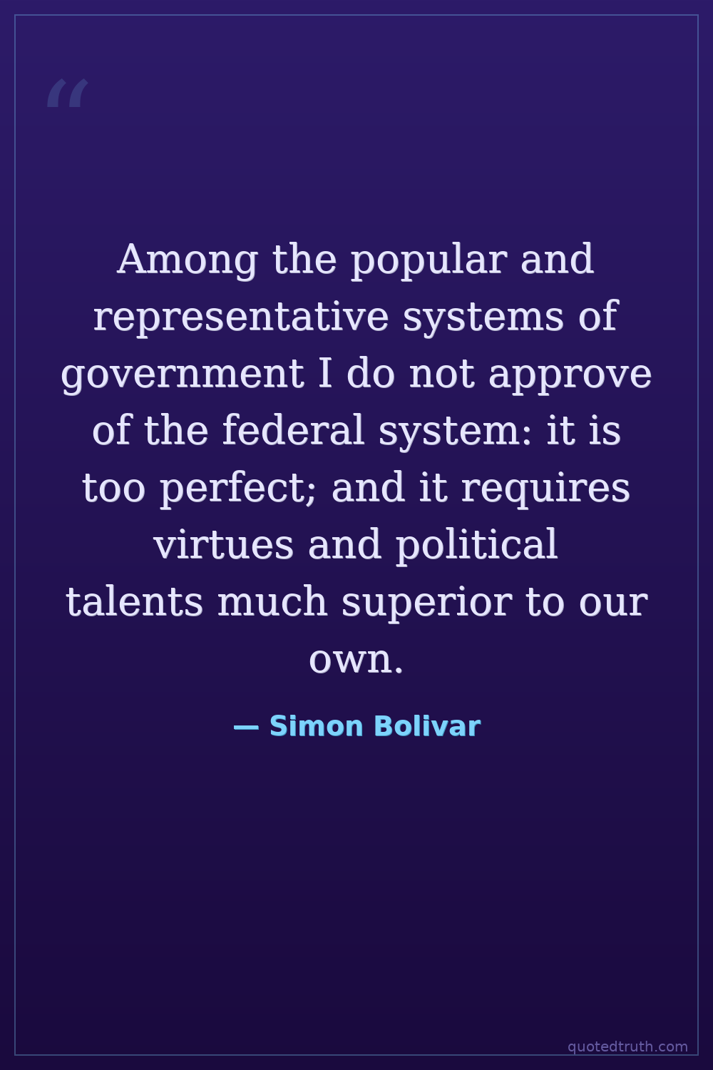 Among the popular and representative systems of government I do not approve of the federal system: it is too perfect; and it requires virtues and political talents much superior to our own.