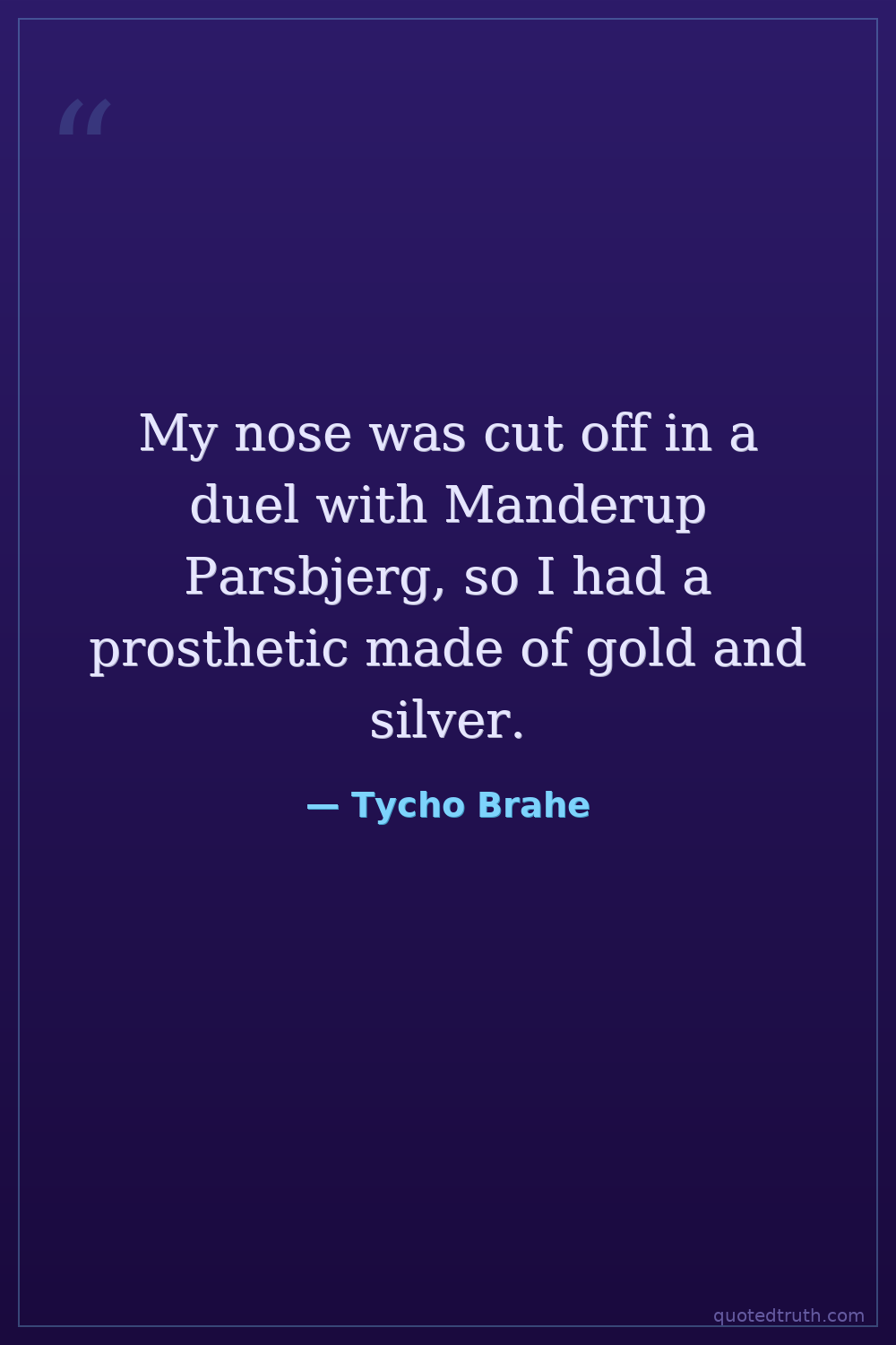 My nose was cut off in a duel with Manderup Parsbjerg, so I had a prosthetic made of gold and silver.