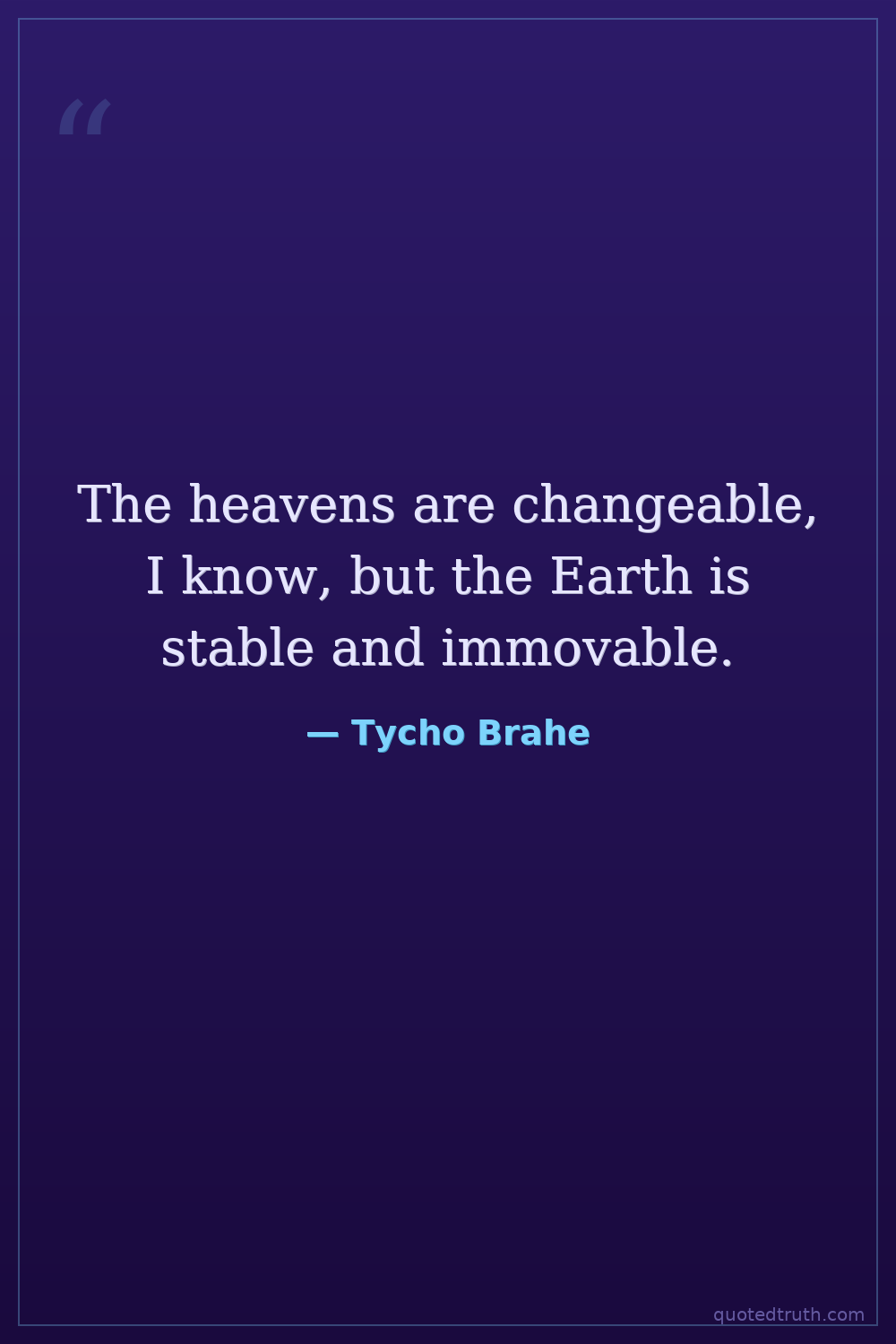 The heavens are changeable, I know, but the Earth is stable and immovable.
