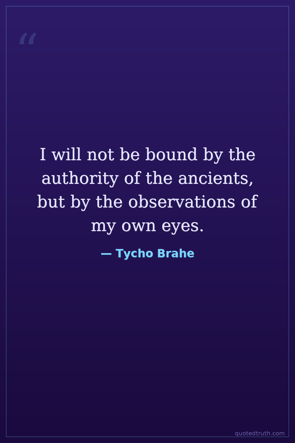 I will not be bound by the authority of the ancients, but by the observations of my own eyes.