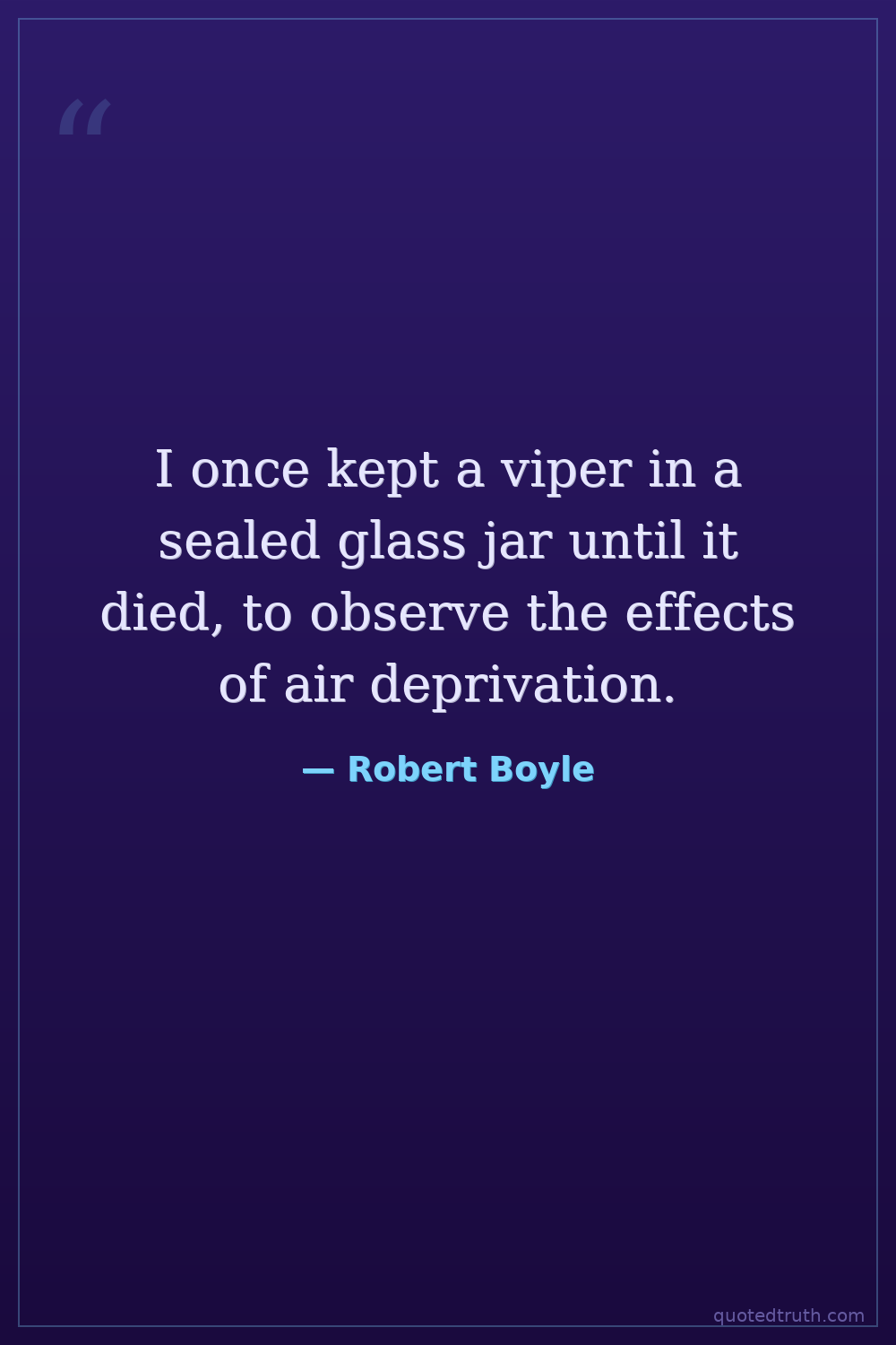 I once kept a viper in a sealed glass jar until it died, to observe the effects of air deprivation.