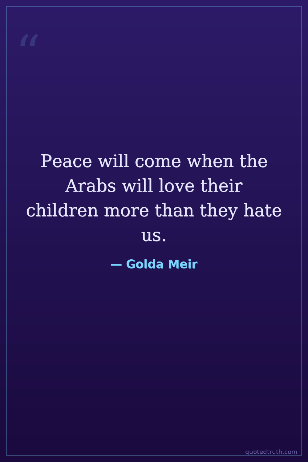 Controversial"I am a woman who has been Prime Minister, and I have never believed in anything but peace."