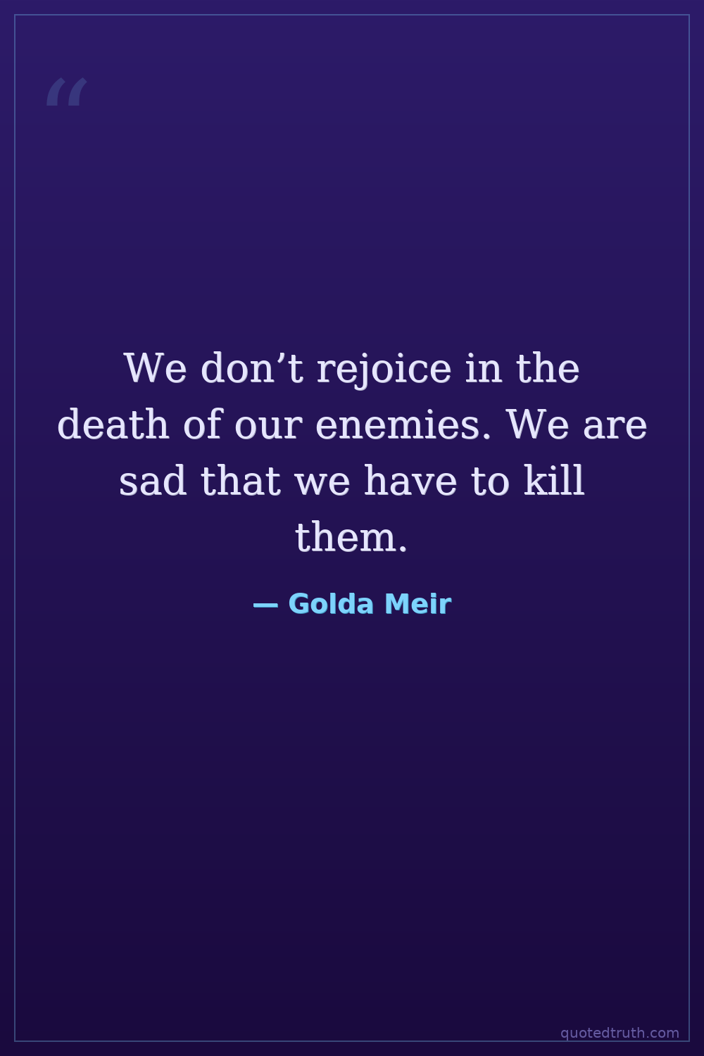 We don’t rejoice in the death of our enemies. We are sad that we have to kill them.