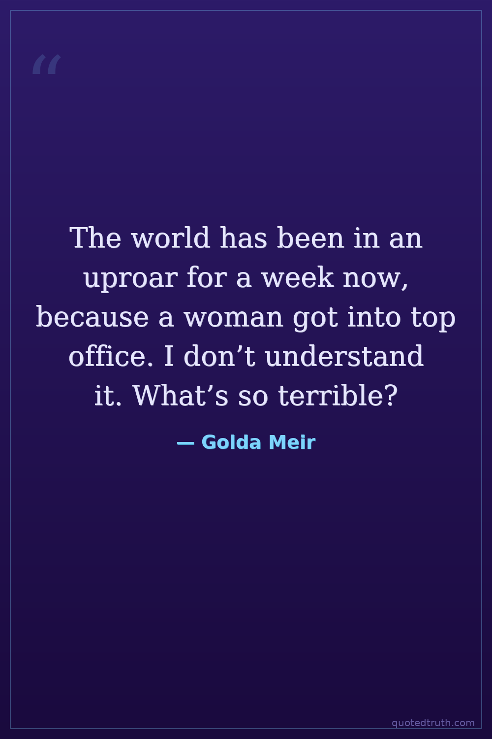 The world has been in an uproar for a week now, because a woman got into top office. I don’t understand it. What’s so terrible?