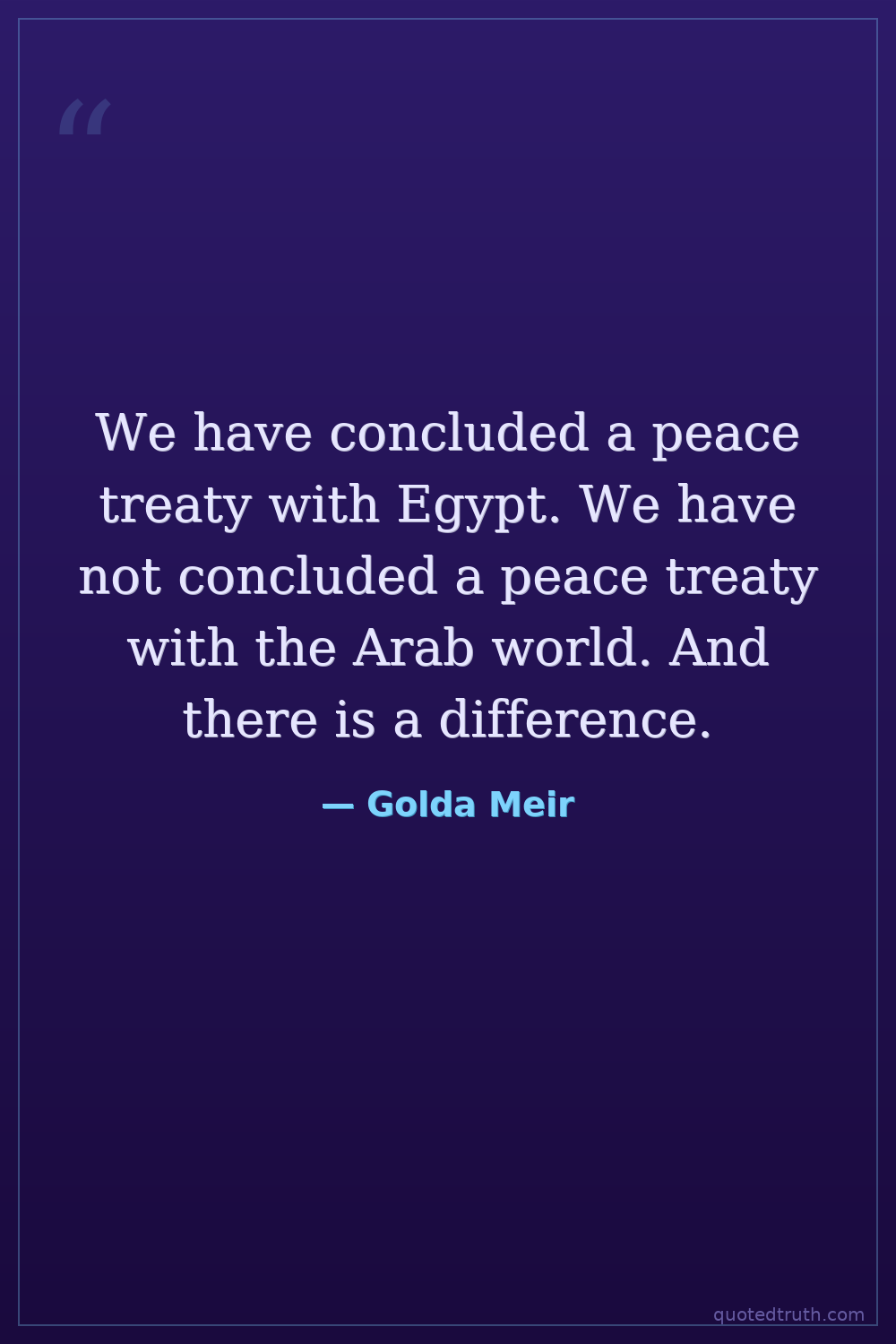 We have concluded a peace treaty with Egypt. We have not concluded a peace treaty with the Arab world. And there is a difference.