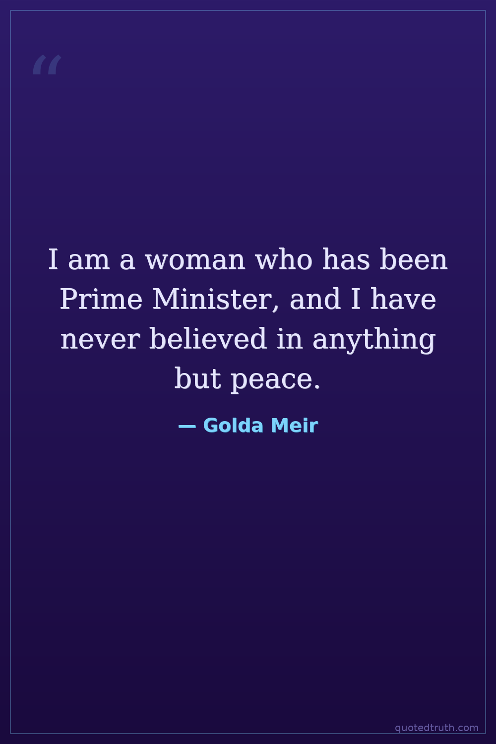 I am a woman who has been Prime Minister, and I have never believed in anything but peace.