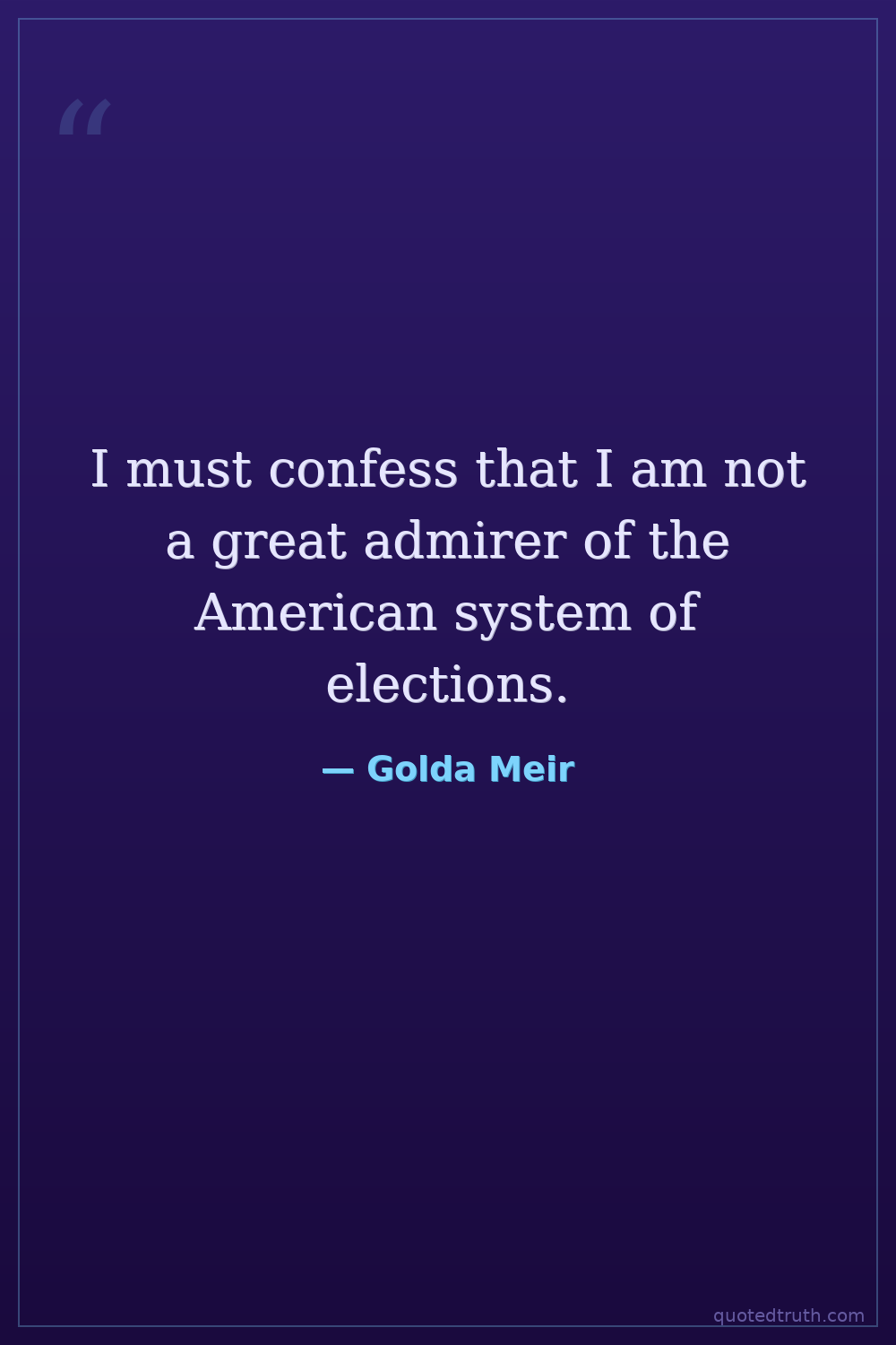 I must confess that I am not a great admirer of the American system of elections.