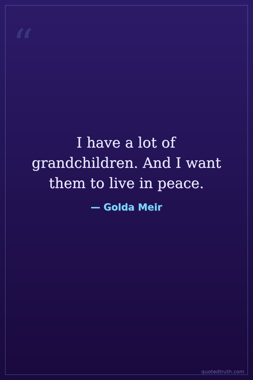 I have a lot of grandchildren. And I want them to live in peace.