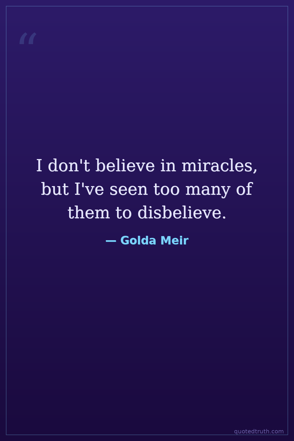 I don't believe in miracles, but I've seen too many of them to disbelieve.