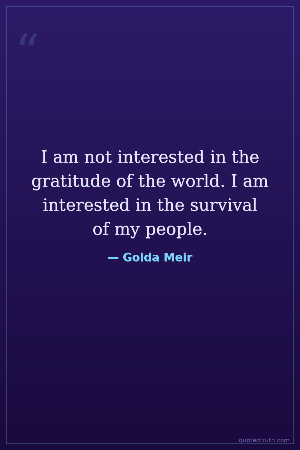 I am not interested in the gratitude of the world. I am interested in the survival of my people.