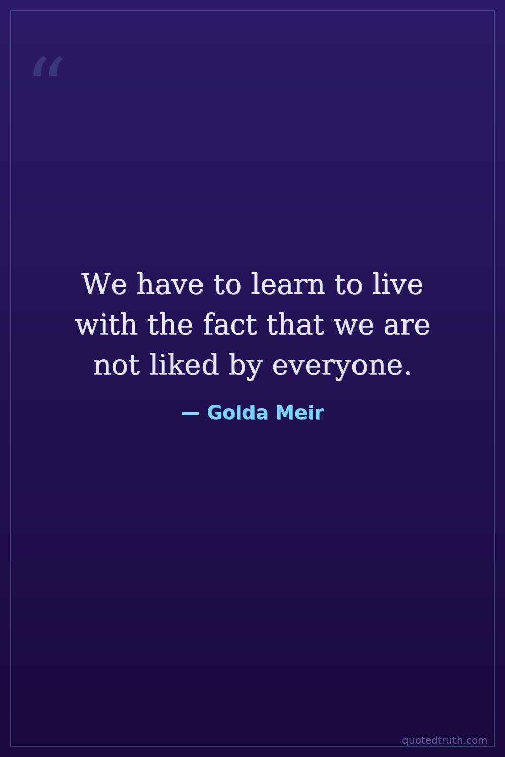 We have to learn to live with the fact that we are not liked by everyone.