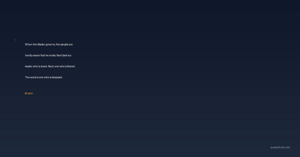 When the Master governs, the people are hardly aware that he exists. Next best is a leader who is loved. Next, one who is feared. The worst is one who is despised.