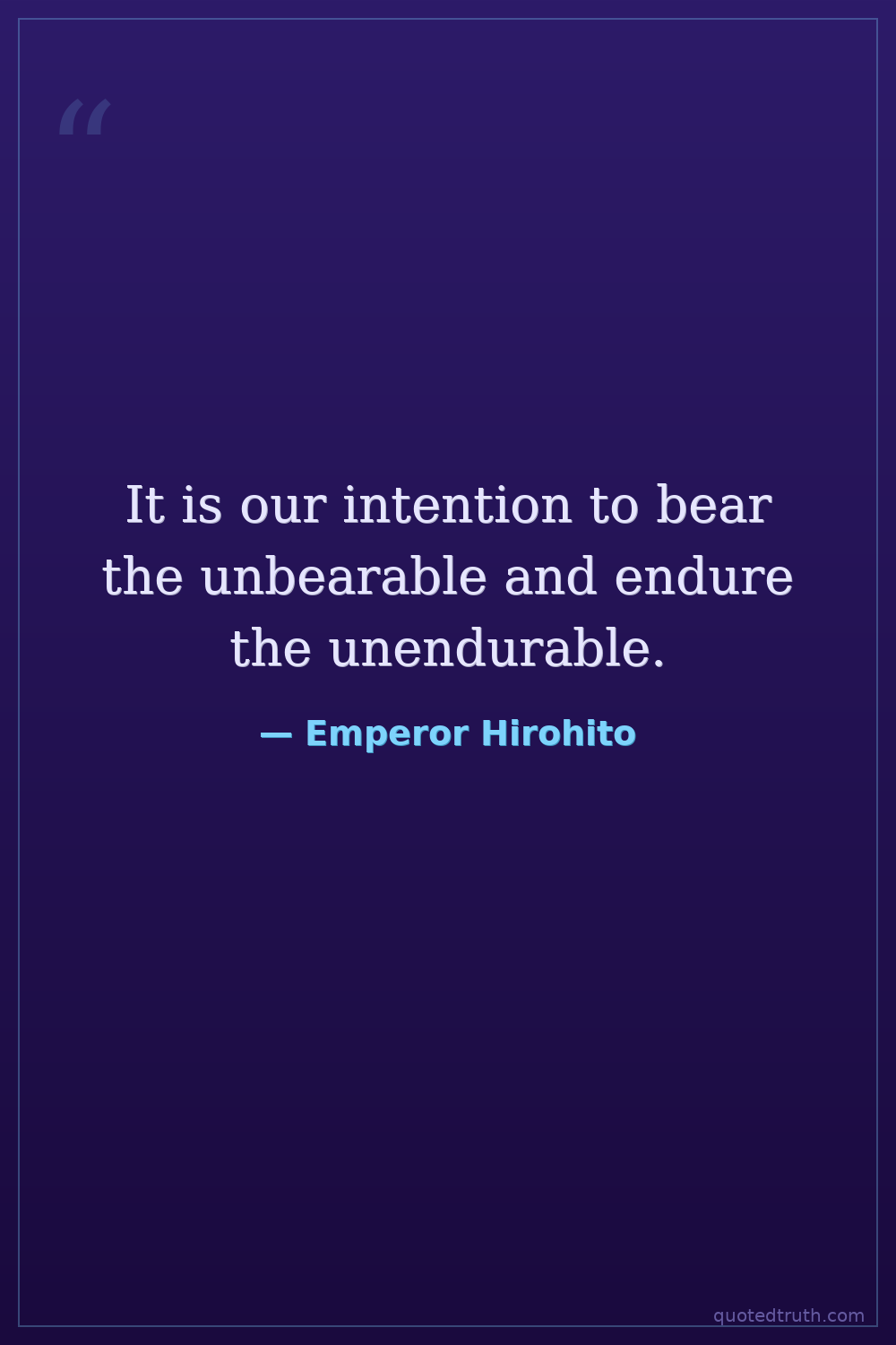 It is our intention to bear the unbearable and endure the unendurable.