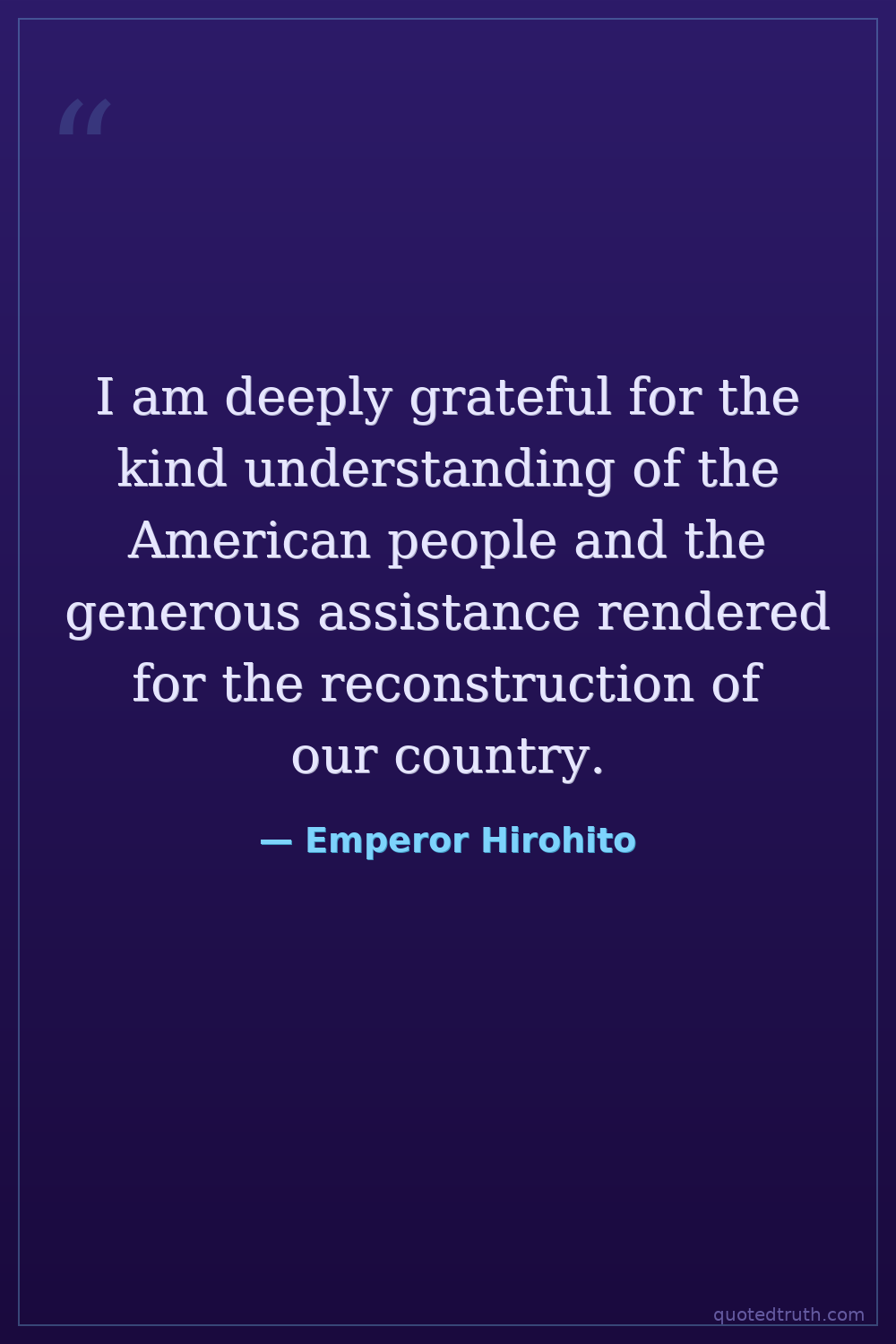 I am deeply grateful for the kind understanding of the American people and the generous assistance rendered for the reconstruction of our country.