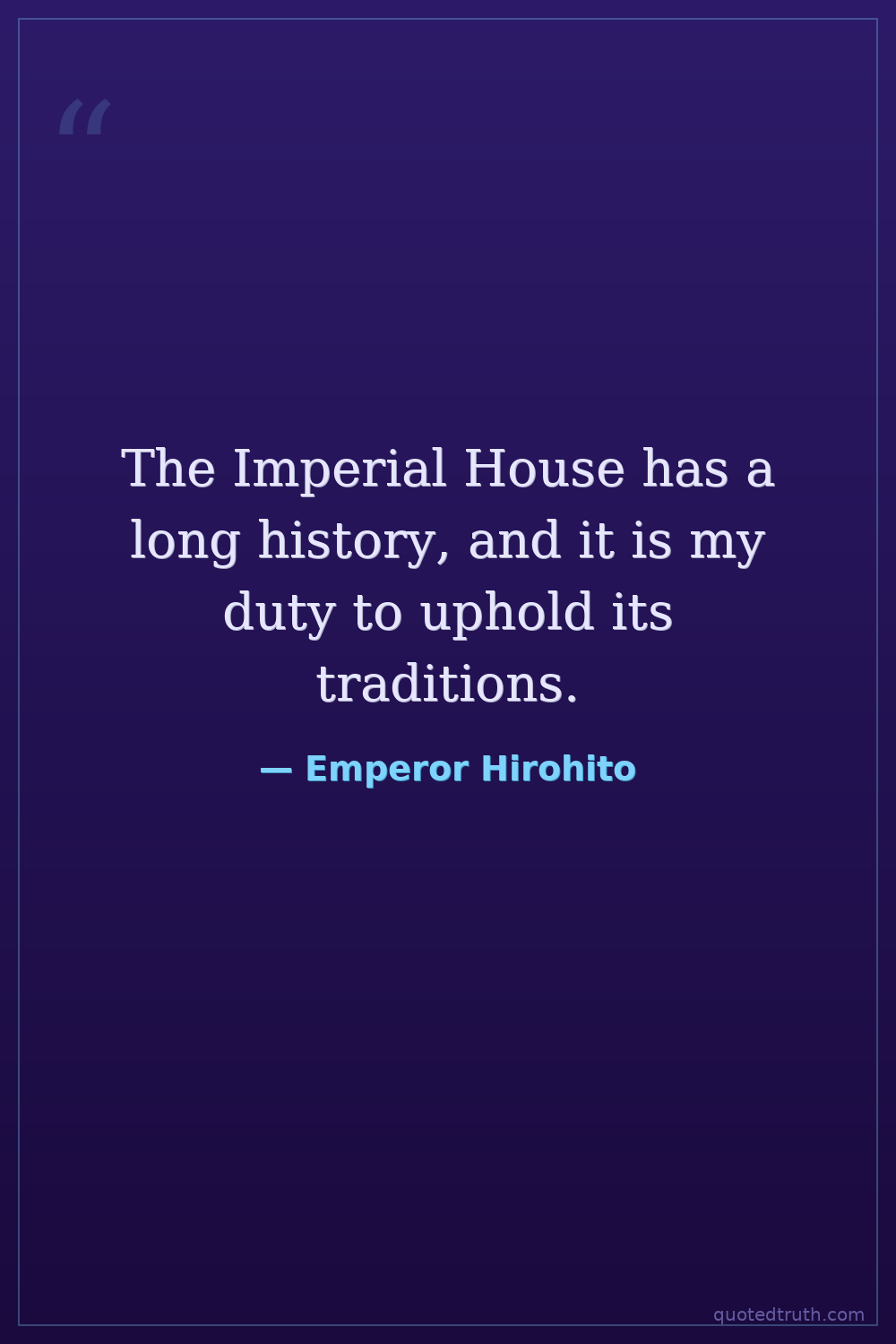 The Imperial House has a long history, and it is my duty to uphold its traditions.