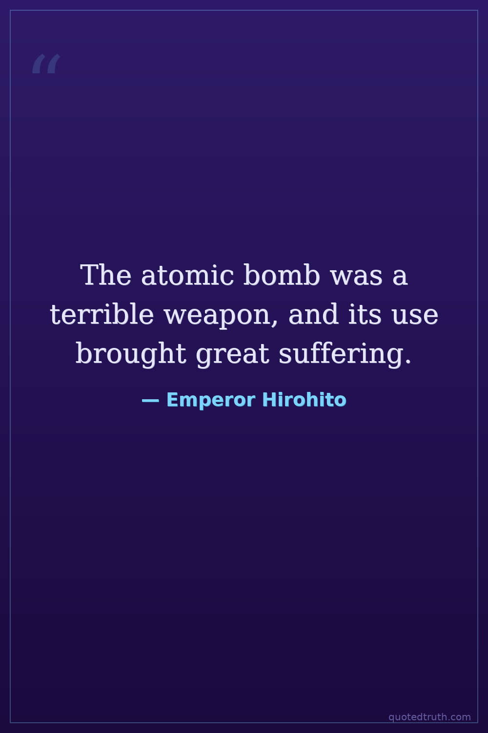 The atomic bomb was a terrible weapon, and its use brought great suffering.
