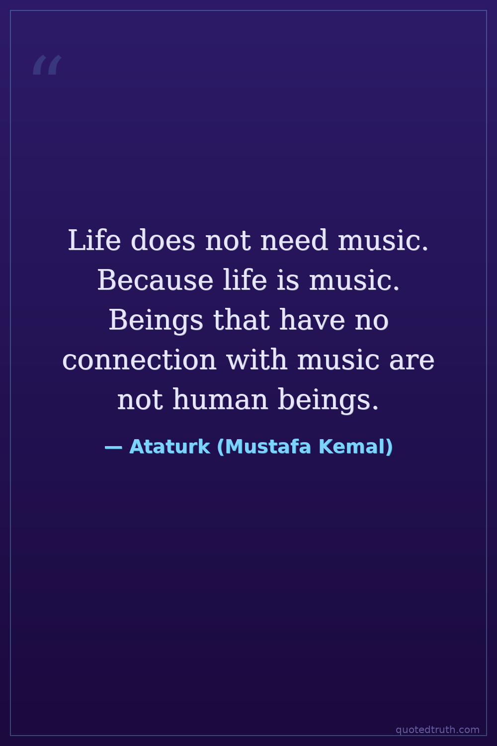 Life does not need music. Because life is music. Beings that have no connection with music are not human beings.