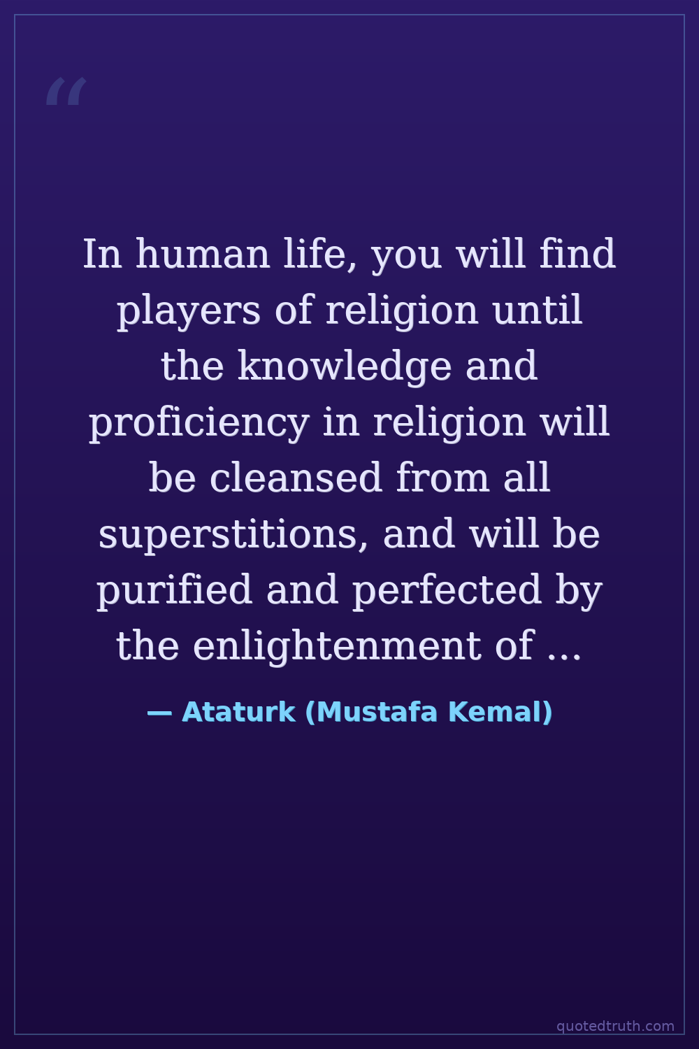 In human life, you will find players of religion until the knowledge and proficiency in religion will be cleansed from all superstitions, and will be purified and perfected by the enlightenment of real science.