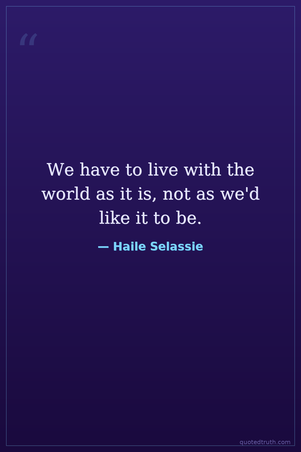 We have to live with the world as it is, not as we'd like it to be.