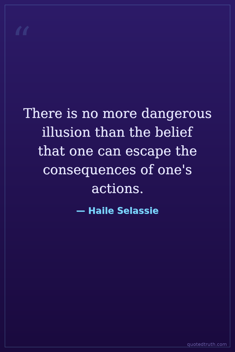 There is no more dangerous illusion than the belief that one can escape the consequences of one's actions.