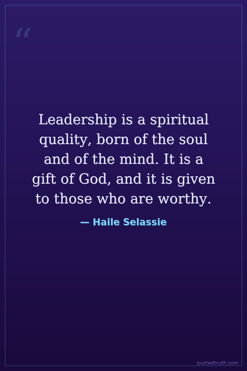 Leadership is a spiritual quality, born of the soul and of the mind. It is a gift of God, and it is given to those who are worthy.