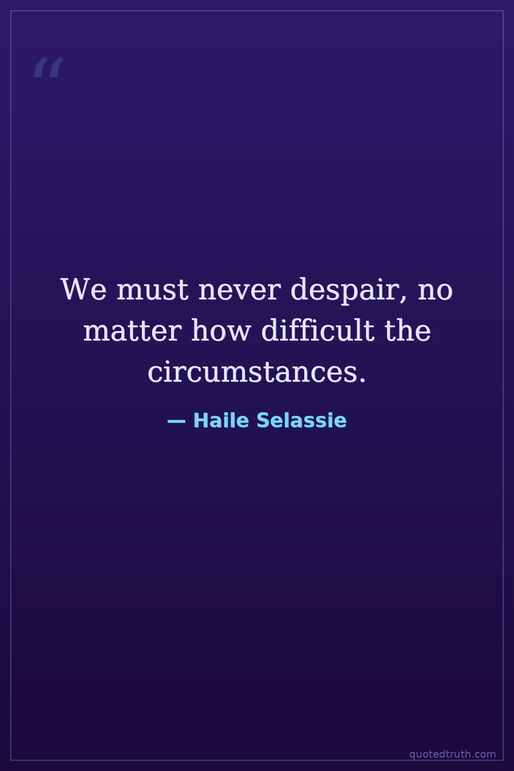 We must never despair, no matter how difficult the circumstances.