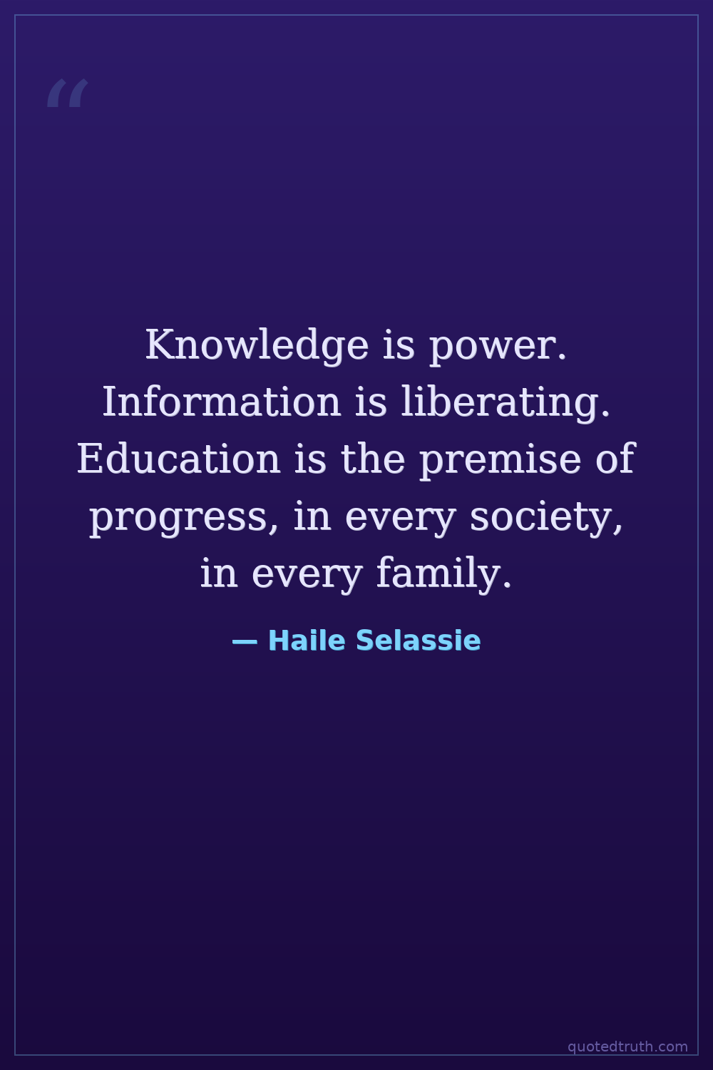 Knowledge is power. Information is liberating. Education is the premise of progress, in every society, in every family.