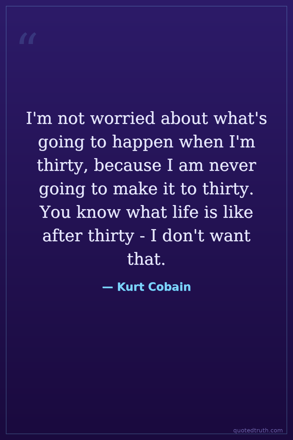 I'm not worried about what's going to happen when I'm thirty, because I am never going to make it to thirty. You know what life is like after thirty - I don't want that.