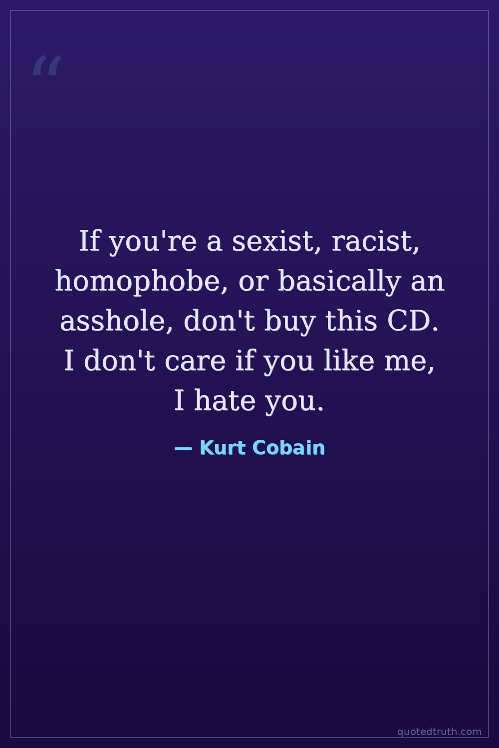 If you're a sexist, racist, homophobe, or basically an asshole, don't buy this CD. I don't care if you like me, I hate you.