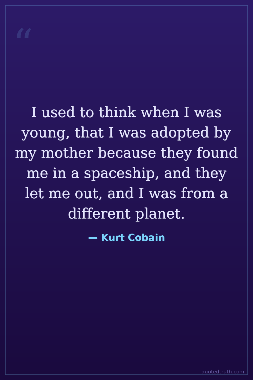I used to think when I was young, that I was adopted by my mother because they found me in a spaceship, and they let me out, and I was from a different planet.