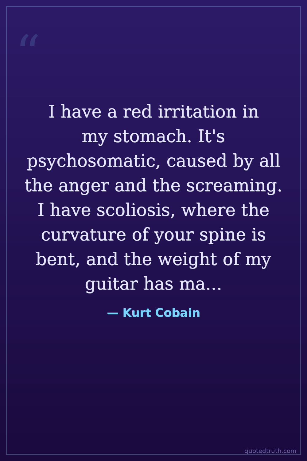 I have a red irritation in my stomach. It's psychosomatic, caused by all the anger and the screaming. I have scoliosis, where the curvature of your spine is bent, and the weight of my guitar has made it worse. I'm always in pain, and that adds to the anger in our music.