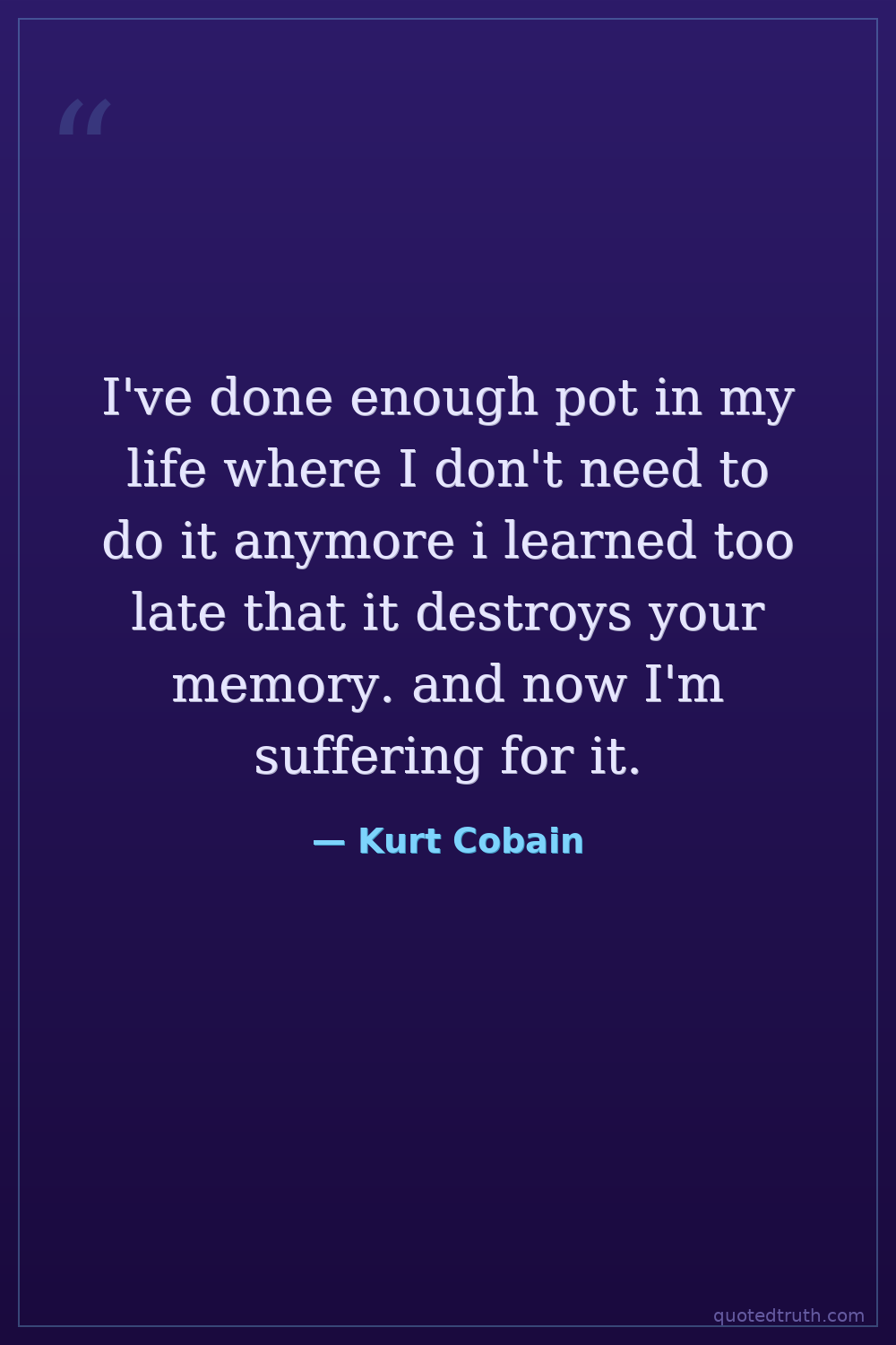 I've done enough pot in my life where I don't need to do it anymore i learned too late that it destroys your memory. and now I'm suffering for it.