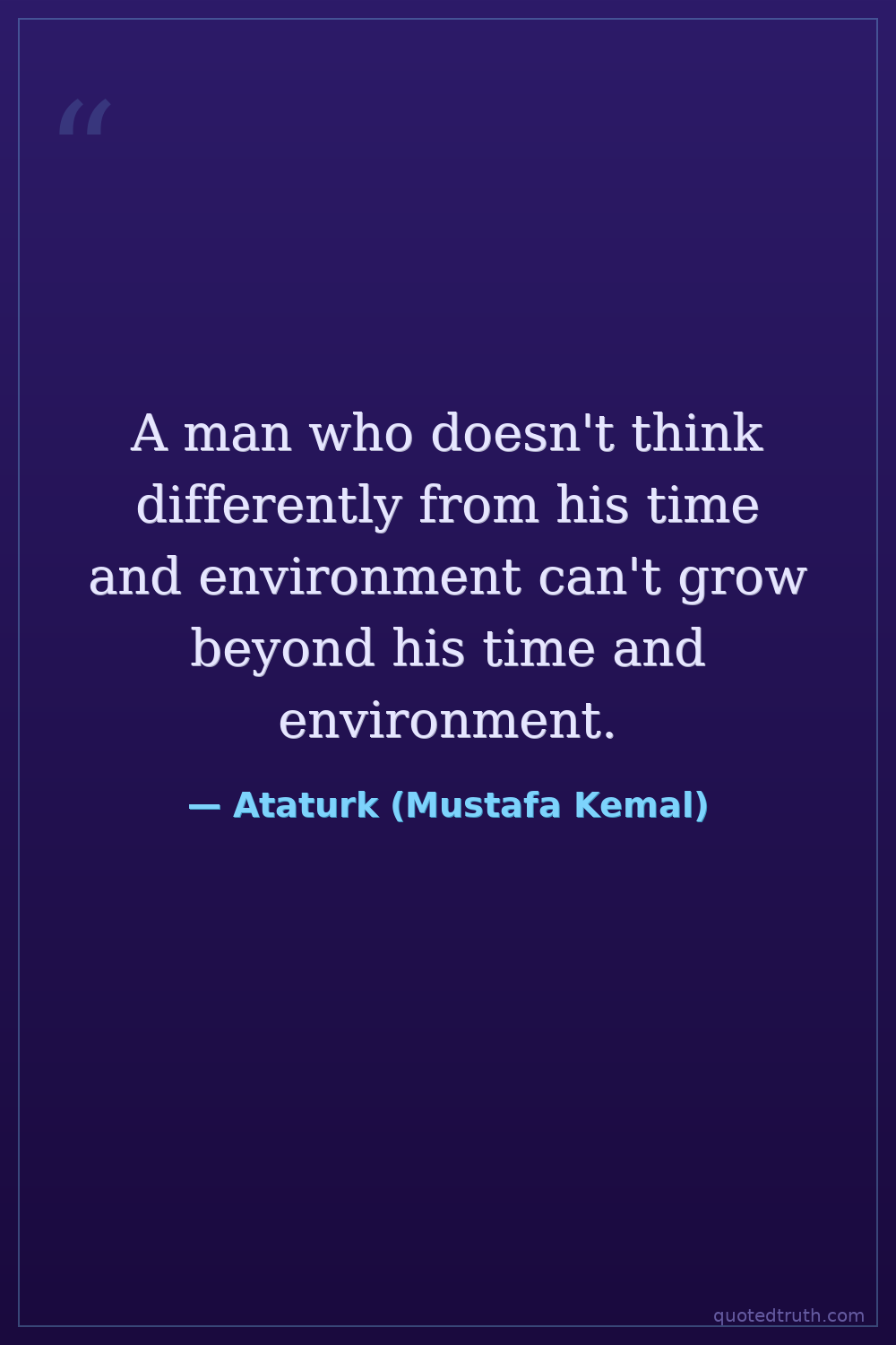 A man who doesn't think differently from his time and environment can't grow beyond his time and environment.