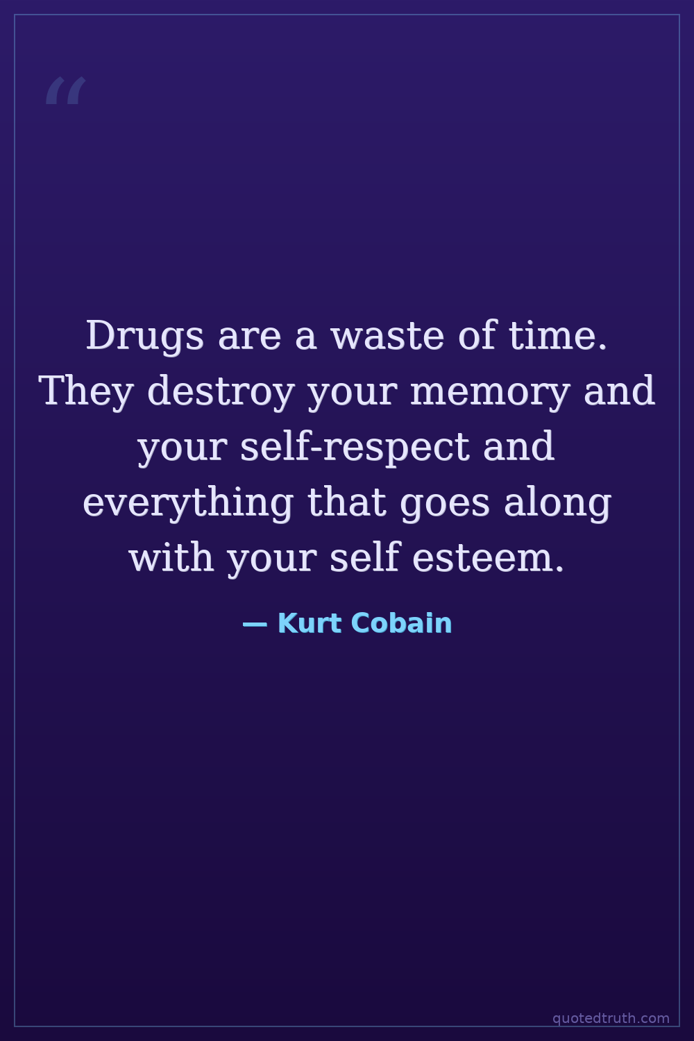 Drugs are a waste of time. They destroy your memory and your self-respect and everything that goes along with your self esteem.