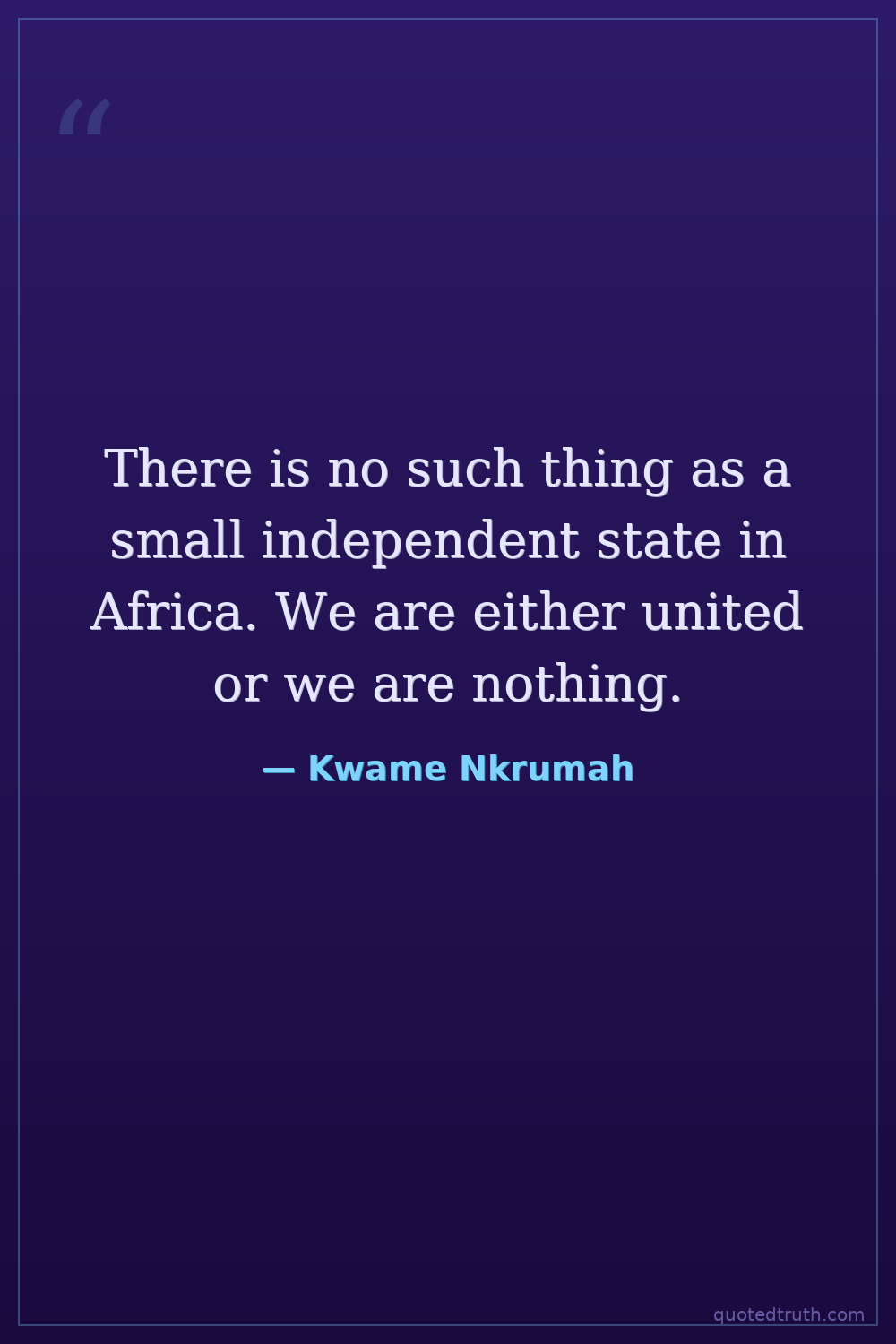 There is no such thing as a small independent state in Africa. We are either united or we are nothing.