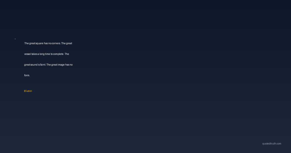 The great square has no corners. The great vessel takes a long time to complete. The great sound is faint. The great image has no form.