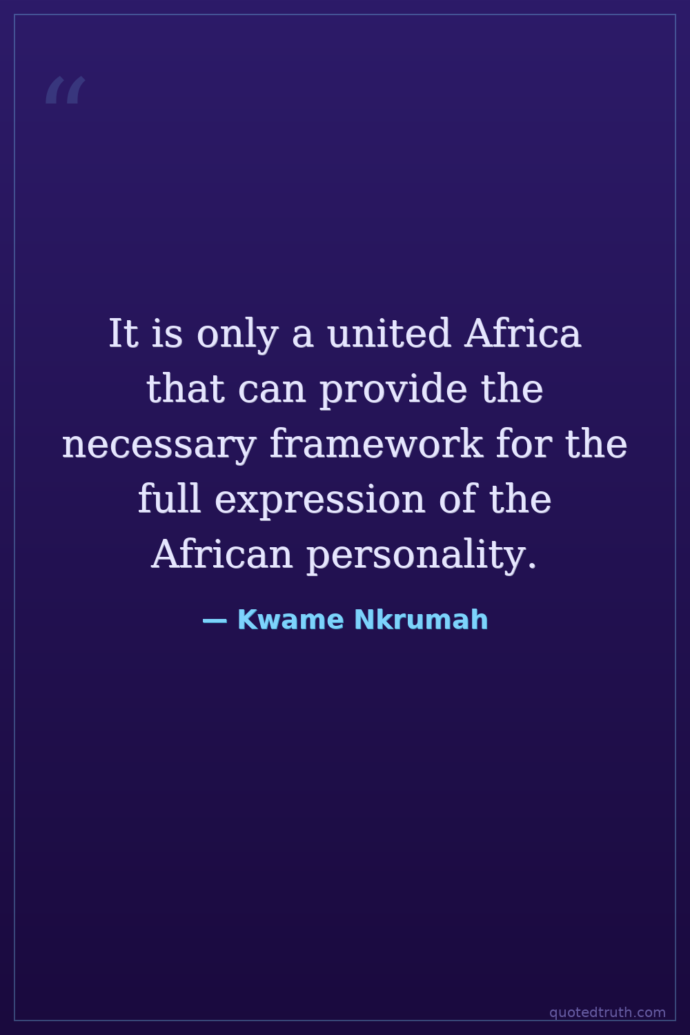 It is only a united Africa that can provide the necessary framework for the full expression of the African personality.