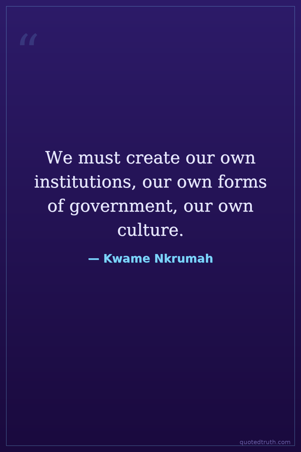 We must create our own institutions, our own forms of government, our own culture.