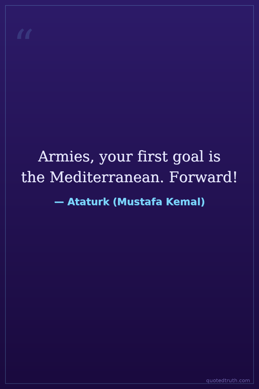 "There are two Mustafa Kemal's. One is the flesh-and-bone Mustafa Kemal who now stands before you and who will pass away. The other is you, all of you here who will go to the far corners of our land to…"