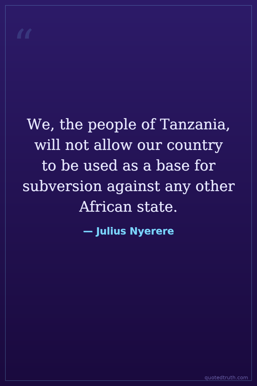 We, the people of Tanzania, will not allow our country to be used as a base for subversion against any other African state.