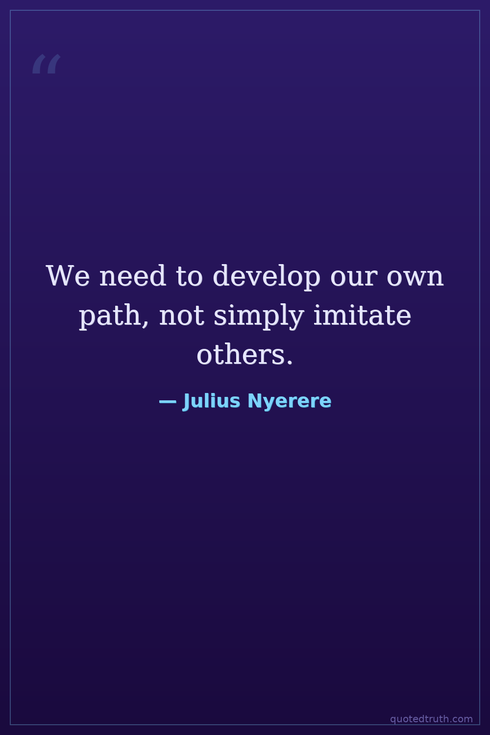 We need to develop our own path, not simply imitate others.