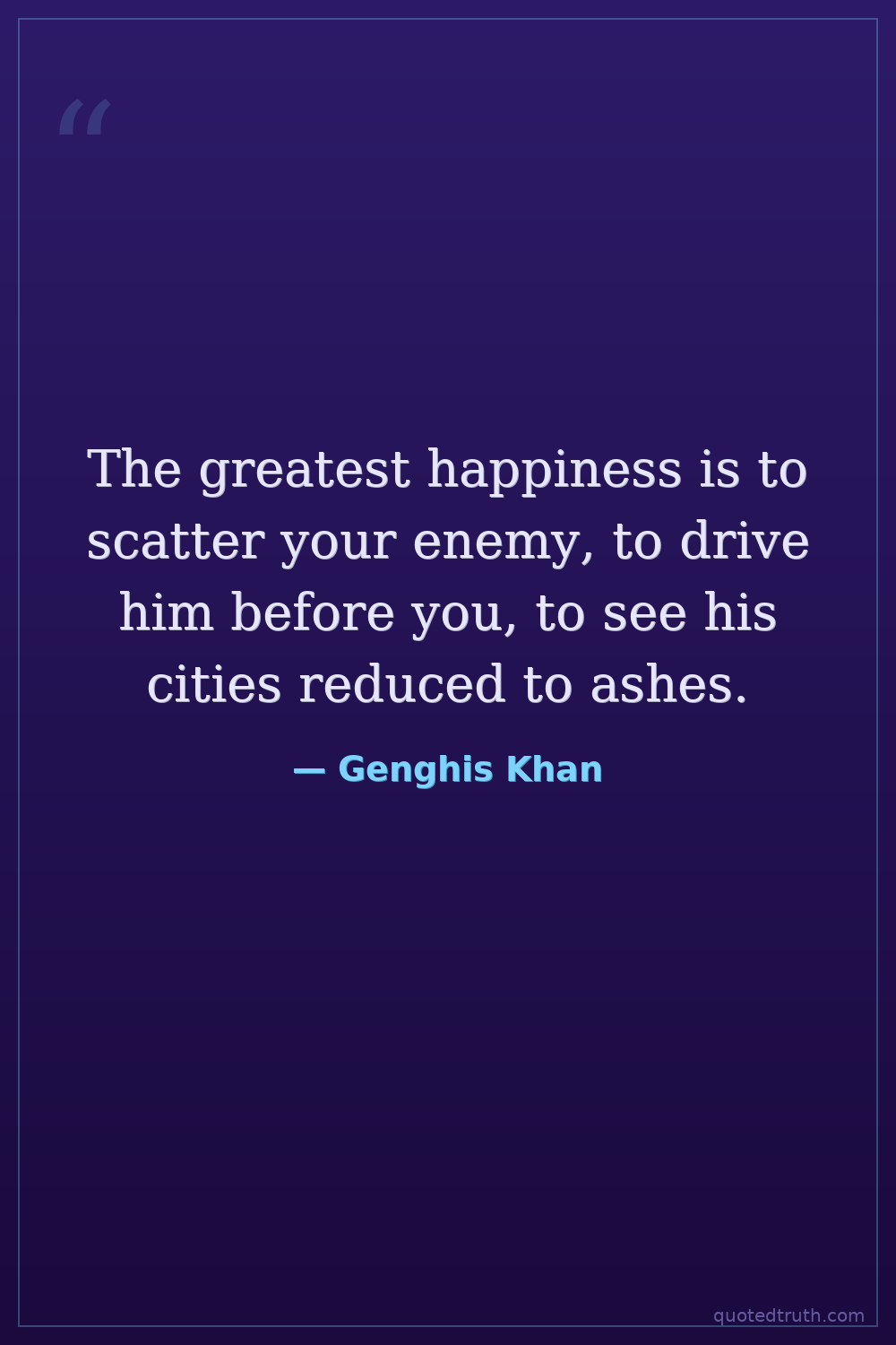 The greatest happiness is to scatter your enemy, to drive him before you, to see his cities reduced to ashes.